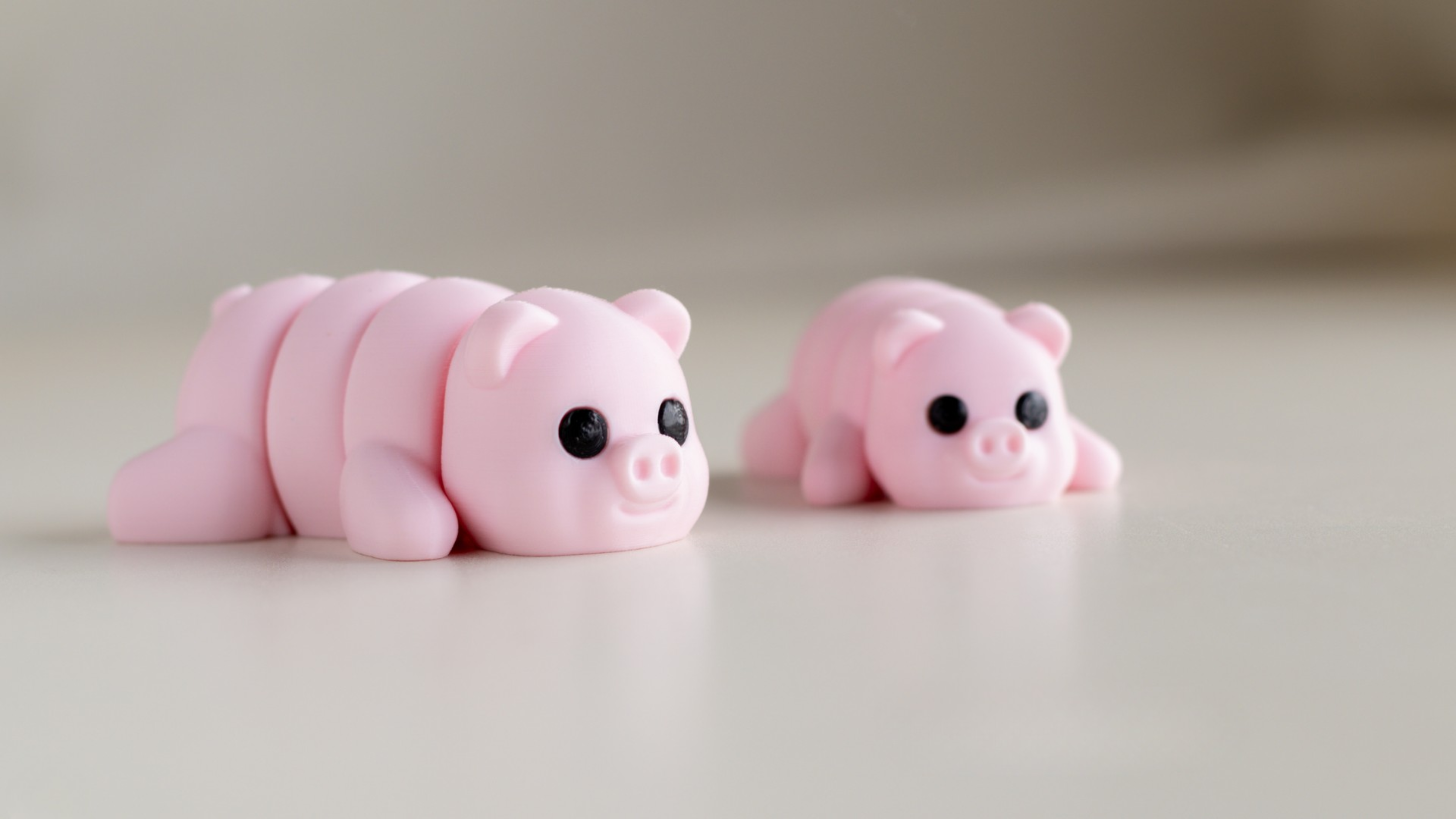 Each little piglet is printed in eco-friendly PLA, featuring smooth articulated joints that let it subtly move and pose.